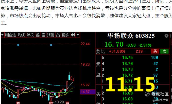 技術上,大盤中陽線以後,今天出現衝高回落,這是非常正常的,不出意外的話,明天應該還有調整,最終回踩目標先看10日線附近,當然,如果能夠順勢回補3050點附近的缺口,那就是大家加倉的機會。