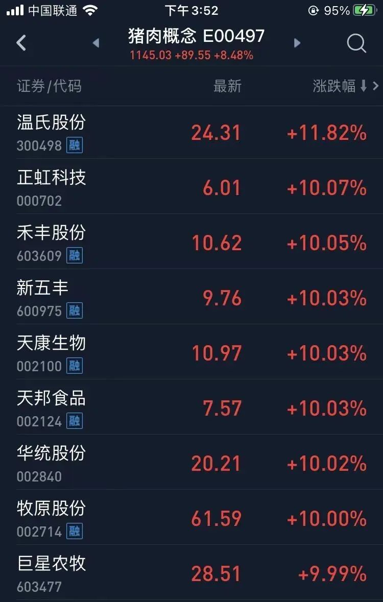所以,我們看到今天會議開後,二級市場豬肉板塊連嚇都沒被嚇一下,在發改委約談會議的刺激下,二師兄的情緒直接被徹底點燃了,養豬大戶紛紛漲停。