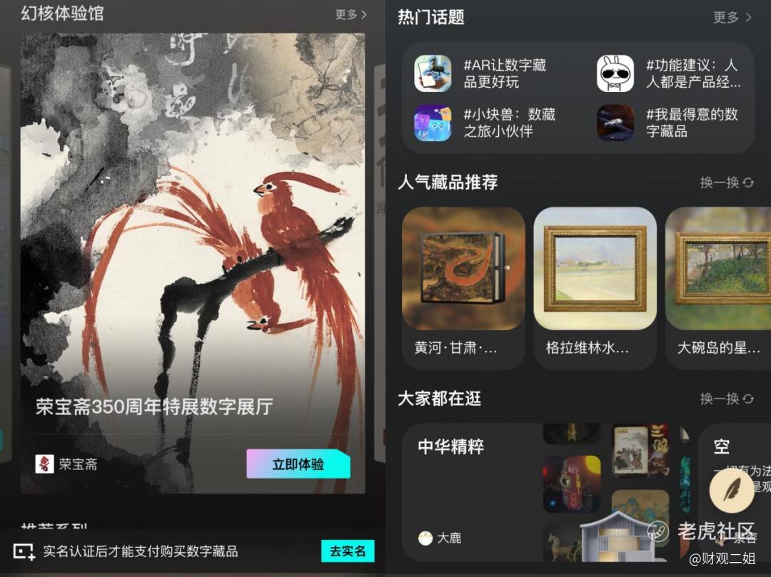 目前,幻核APP尚能正常登錄,首頁的幻核體驗館,榮寶齋數字展廳、齊白石作品數字特展、敦煌壁畫等數字展館或藏品,用戶仍可進入查看。但因沒有話題廣場和用戶評論區,除卻早已不再新鮮的AR技術,實際的用戶體驗和社交意願,其實是大打折扣的。