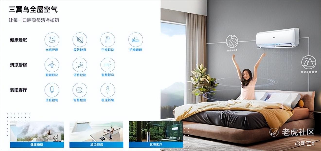 正是這樣一個最小的問題,在三翼鳥場景方案下,會更好的精確的進行場景化的捕捉,又通過一系列我們看到的智慧新風、極致靜音、主動交互,甚至芳香係數,像空調和枕頭的空枕聯動一樣,全方位的提升人們的睡眠質量。