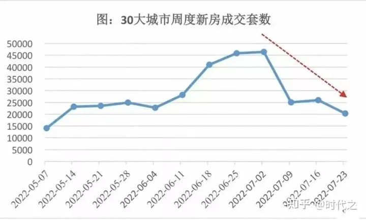 另外一個就是房地產的銷售數據,一些第三方研究機構,基本上每週都會公佈一些大城市的成交數據。在7月前三週,這個數據,也跌回到了5月份的水平。