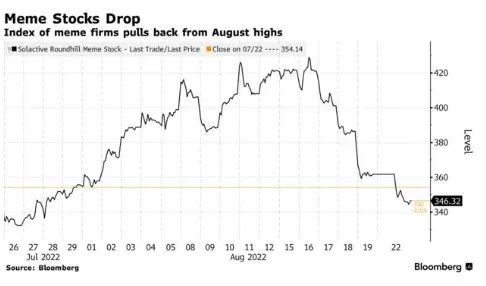 3B家居(BBBY.US)股價下跌16%,此前有報道稱,一些供應商在該公司拖欠貨款後,開始限制或停止發貨。這種悲觀情緒也波及了其他meme股,其中GameStop(GME.US)於本週一下跌5.5%,AMC院線(AMC.US)下跌6.4%。
