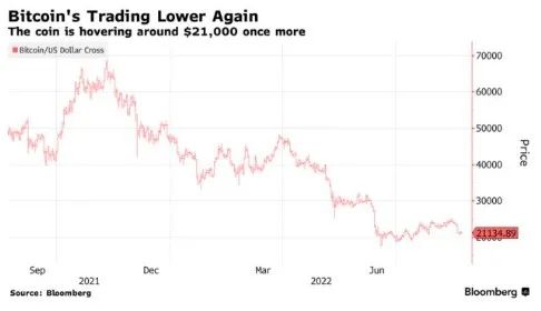 隨着投資者解除了對美聯儲加息幅度可能低於預期的押注,數字資產也遭遇重挫。比特幣上週突破了2.5萬美元大關,但此後已跌向2.1萬美元。與此同時,涵蓋市值排名前100的加密貨幣指數在上週下跌近12%之後,於本週一下跌了3.1%。