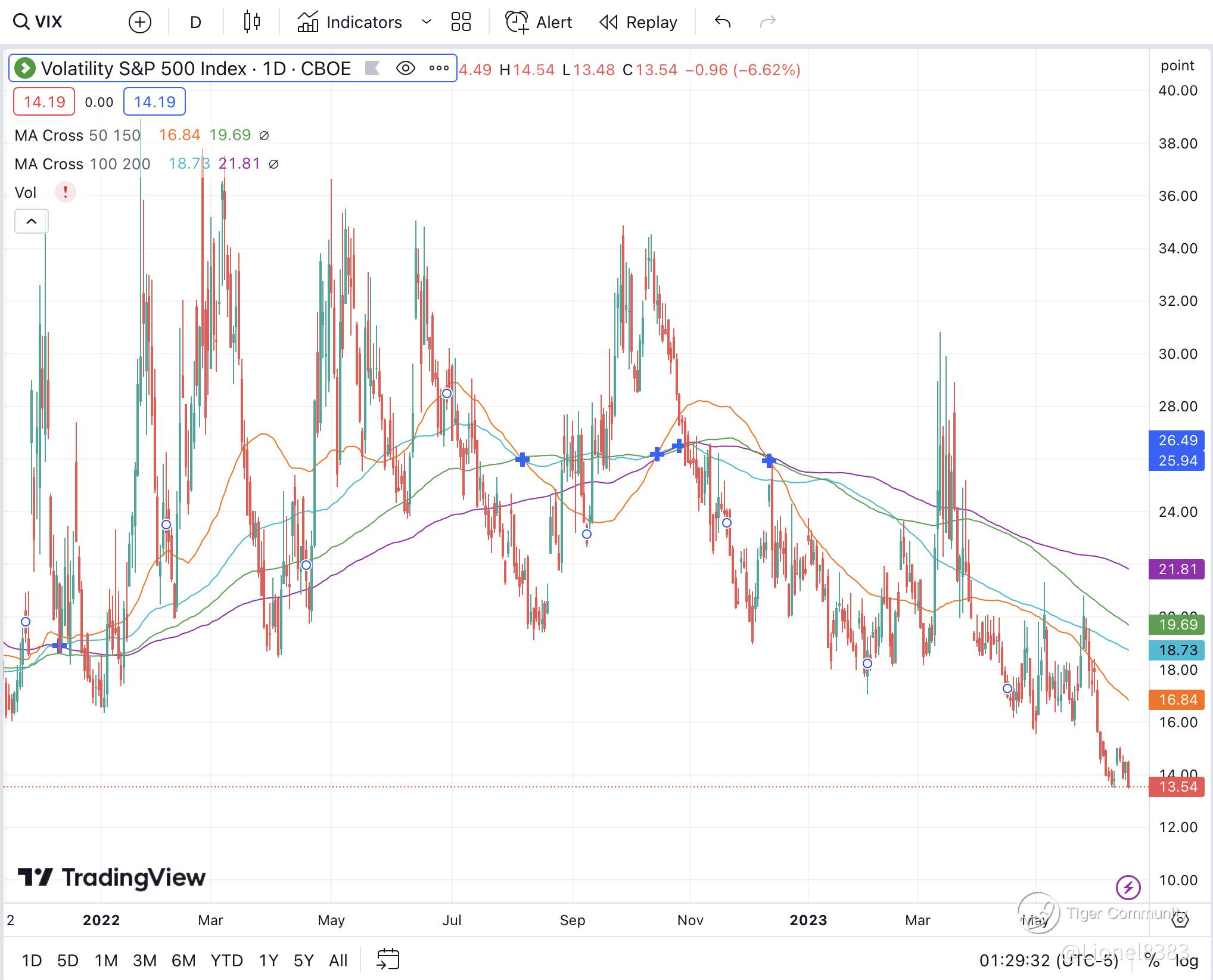Also, the volatility index (VIX) is below 15, indicating that traders are bullish. The VIX measures expected price fluctuations or volatility in the S&P 500 Index options over the next 30 days. The VIX often drops on days when the broader market rallies and soars when stocks plunge.