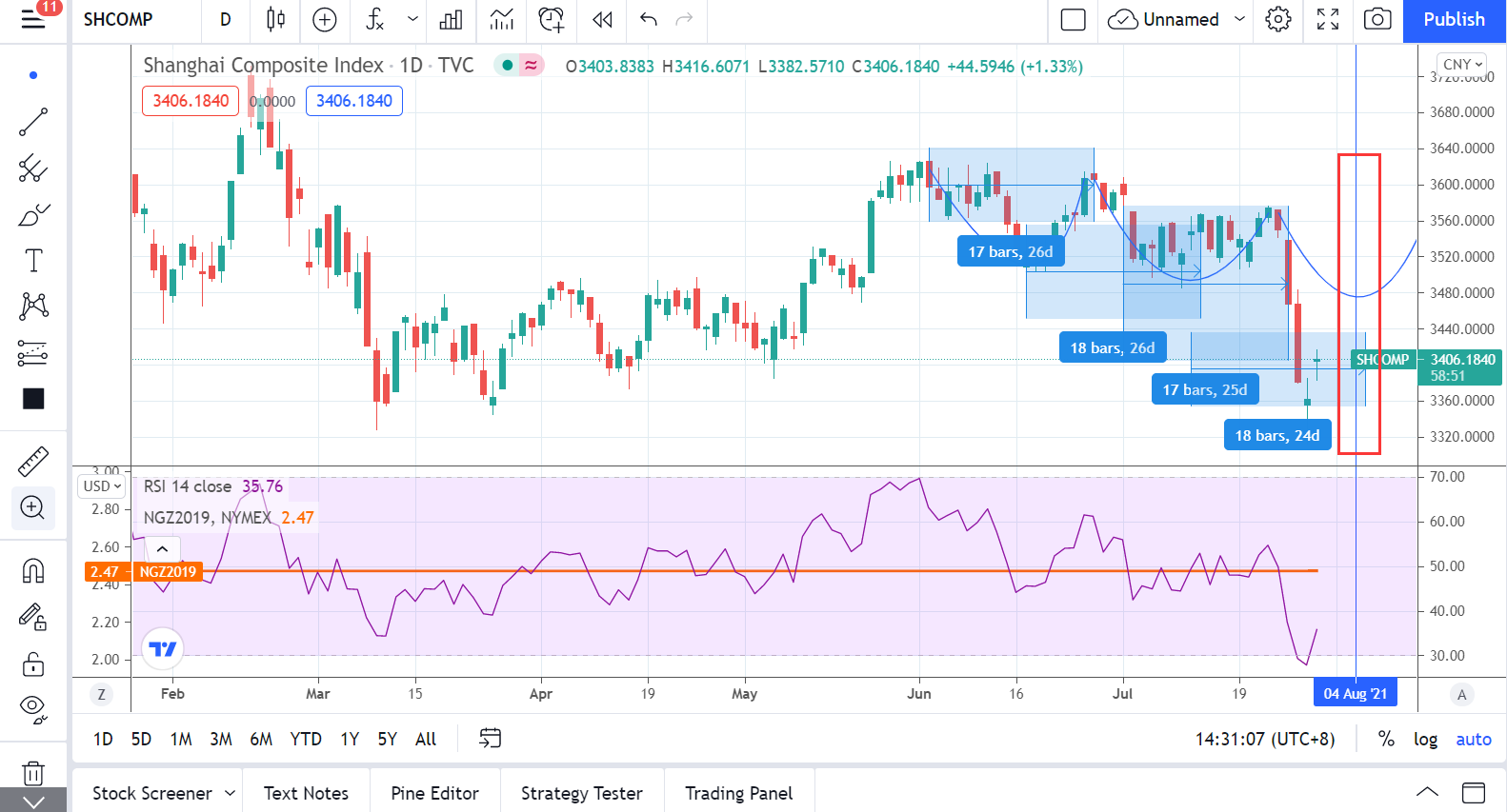 再開看看A股大盤,上證指數在昨晚的鴿派美聯儲的刺激下也開始了觸底反彈,只是我短期並不看好這個走勢,而且明顯是有一定的國家隊的身影出沒的。A股真正的變盤可能會在8月初3號到5號,現在是震盪築底的階段,價格可能會反覆的測試一下漲跌區間,在變盤口再開始嘗試向上。