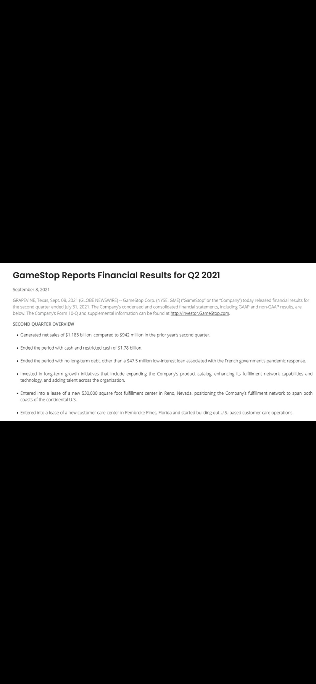 Still on the fence whether or not you should invest in $GameStop(GME)$? Allow me to present you some key takeaways from Q2 2021 earning call. Make your own decisions. ???