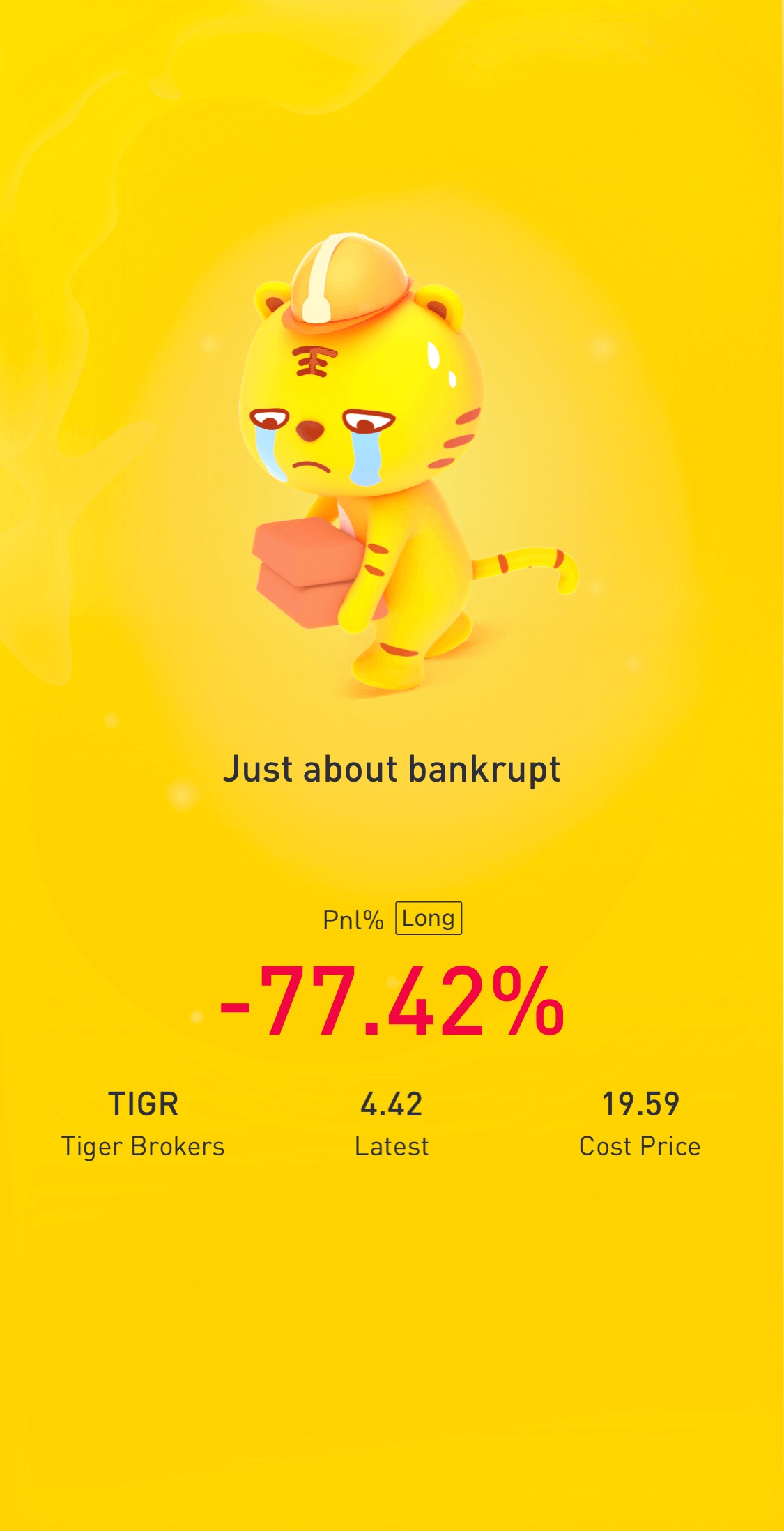 $Tiger Brokers(TIGR)$Can anyone beat me? -77% ๐๐๐๐ hold until my grave