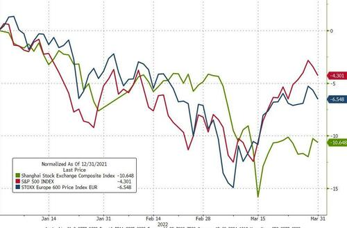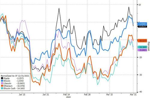 Cryptocurrencies also had a tough first quarter, with Ethereum down more than 10% while Bitcoin fell just 1% in the quarter.