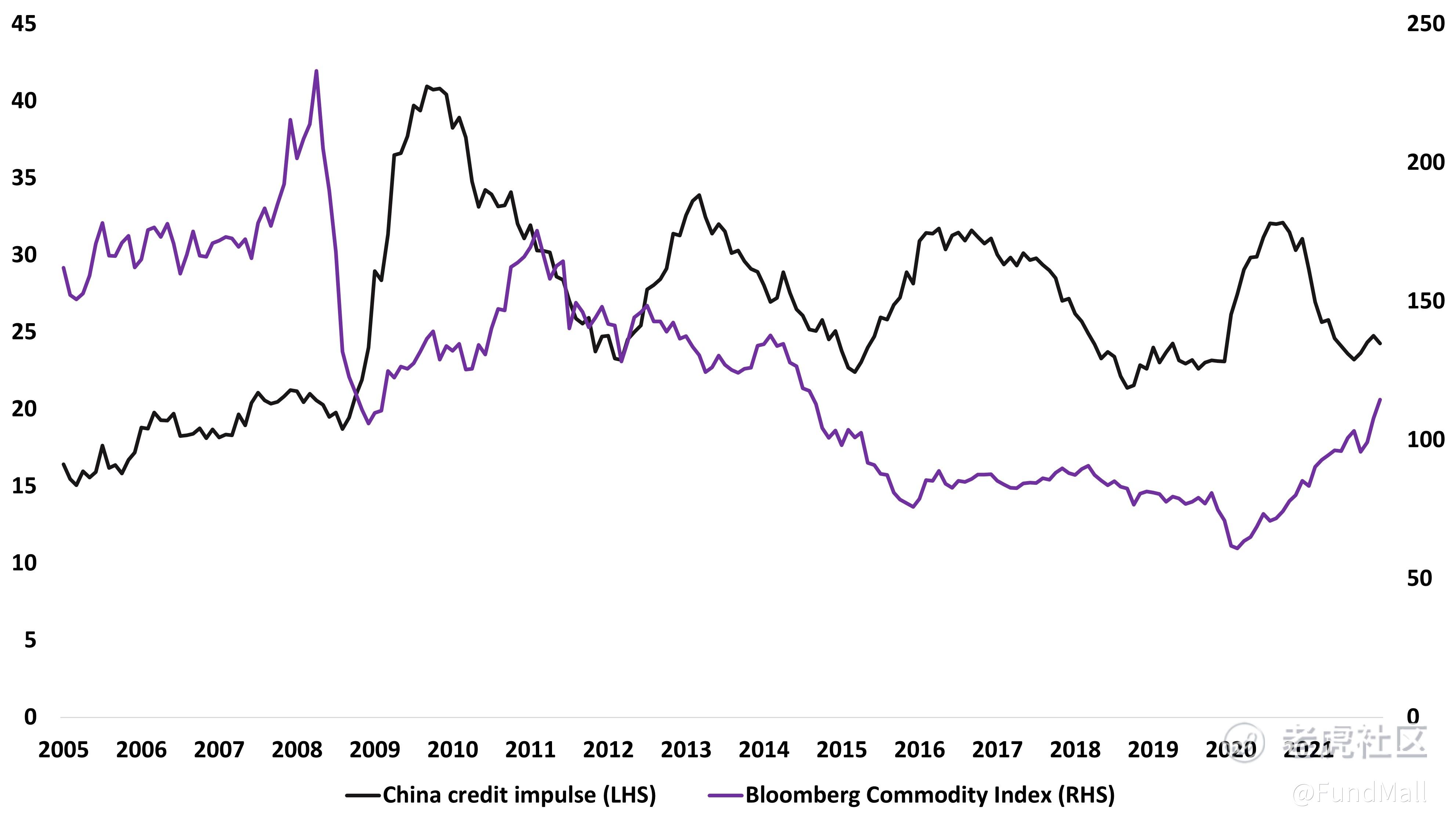 Chart 7: China credit growth leads to higher commodity prices. Source: Bloomberg