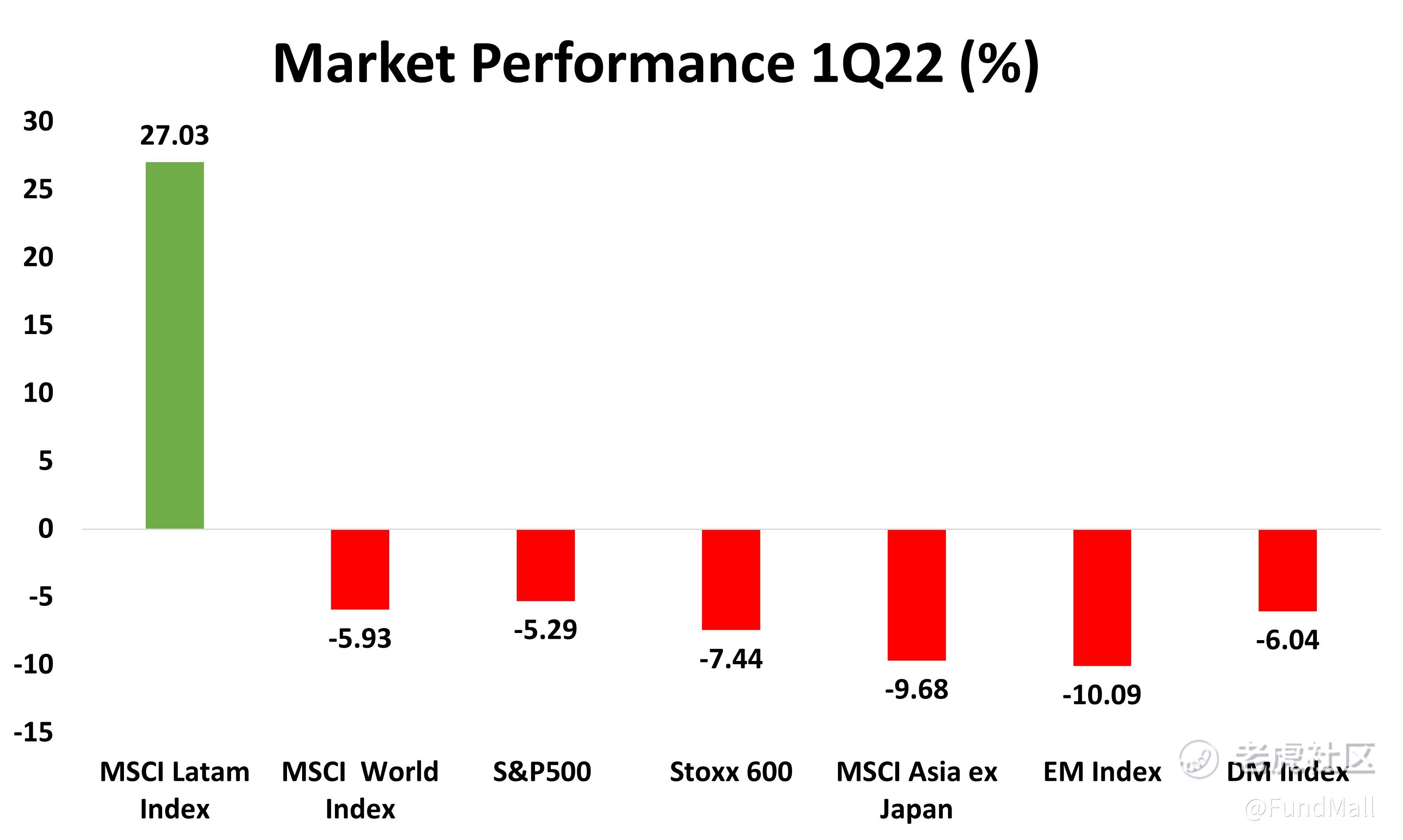 Amidst all the selling pressure witnessed in global markets, the Latin America (“LatAm”) equity market stood out as one of the best performing market as we draw an end to the first quarter of this year – MSCI LatAm Index registered returns 27% as of 25 March 2022, in USD terms, outperforming global peers by a huge margin.