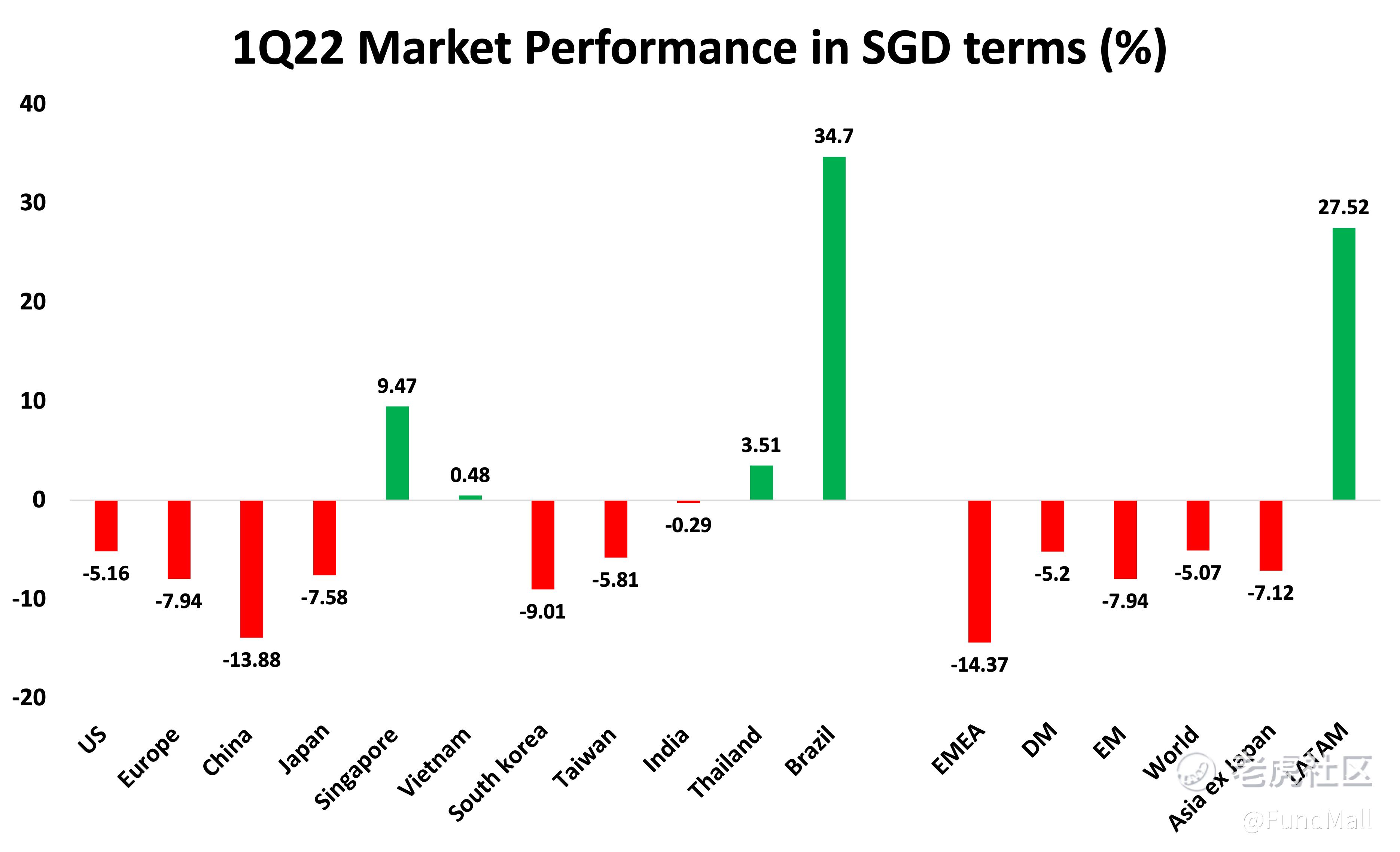 Despite several tailwinds such as 1) the global growth recovery shifting a gear higher, 2) commodity upcycle, and 3) dollar weakness setting the stage for Latin American (LatAm) equities to perform well in 2021, the bloc’s equity ended yesteryear as one of the worst performing markets. This year, the region’s equity market is the best performer till date – MSCI LatAm Index registered returns of almost 28% as of 31 March, in SGD terms, outperforming global peers by a huge margin.