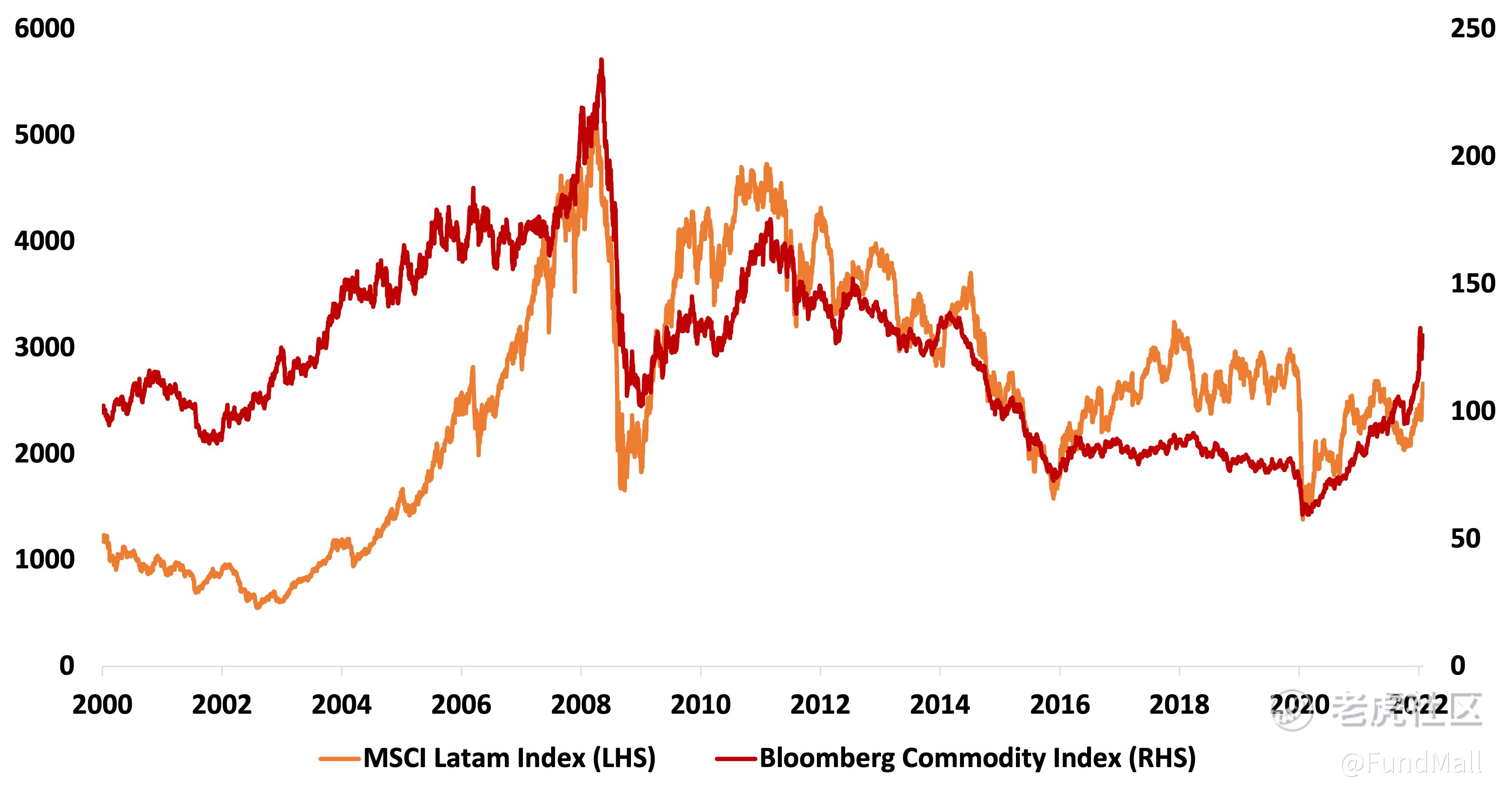 Chart 6: Positive correlation between commodity prices and LatAm equities