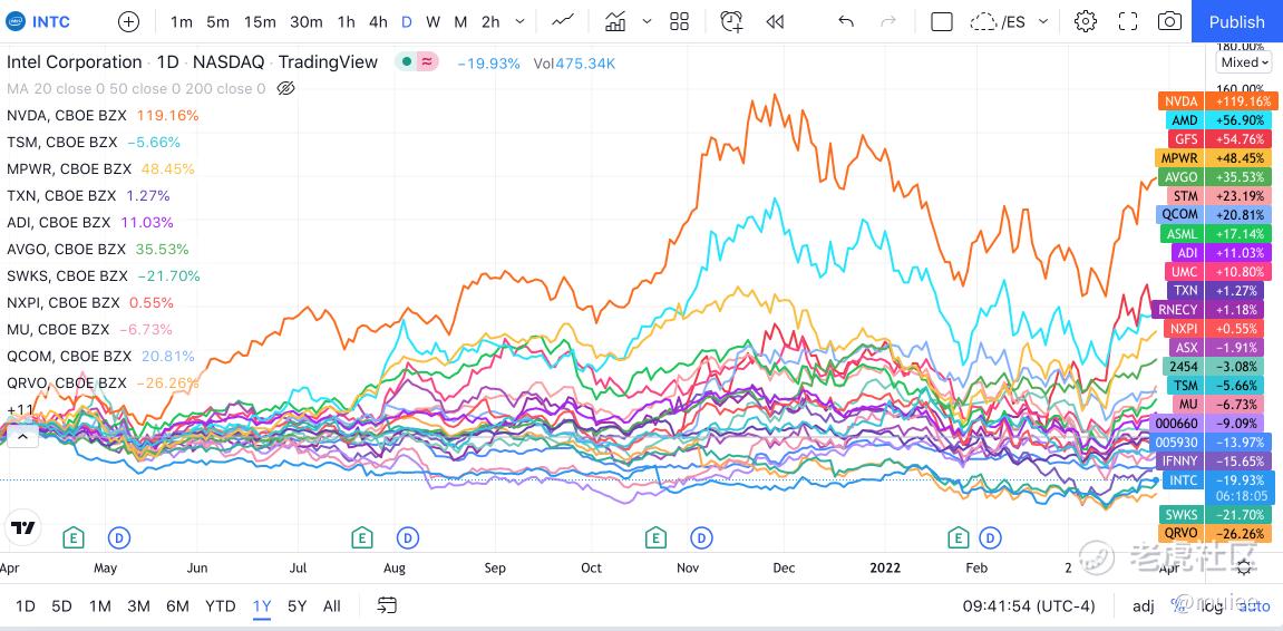 Next, looking at 1-year stock prices might give better clues of this year’s performance, as the chip shortage that started in 2020 looks set to continue well into 2022. In chart below, the top three performers are Nvidia $NVIDIA Corp(NVDA)$ +119.16%, Advanced Micro Devices $AMD(AMD)$ +56.90% and GlobalFoundries $GLOBALFOUNDRIES Inc.(GFS)$ +54.76%.