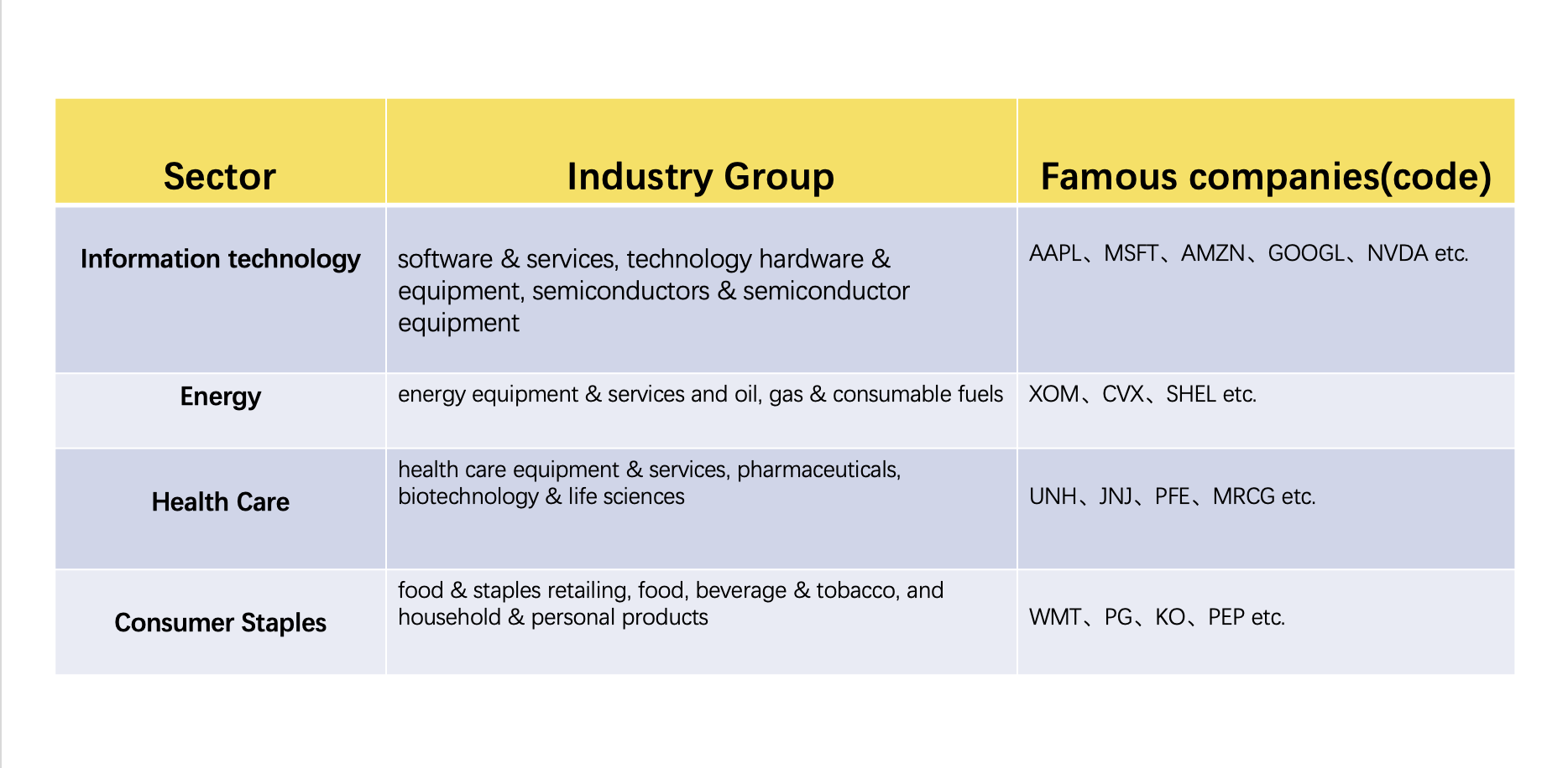 The first is the information technology industry, such as software & services, technology hardware & equipment, semiconductors & semiconductor equipment are all branches of this industry. There are many big players in this industry, such as Apple, Microsoft, Amazon, Google, $NVIDIA Corp(NVDA)$ and so on.