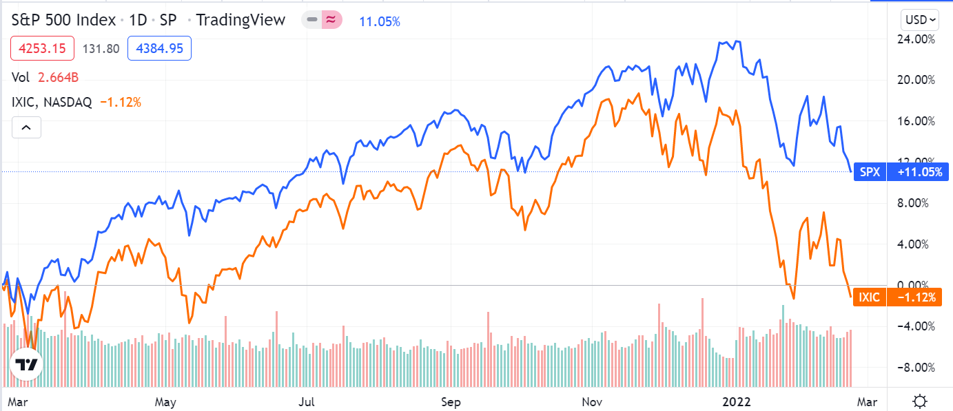 The S&P 500 slumped on Tuesday, slipping into correction territory for the first time in two years and joining the Nasdaq Composite, as Russia sends troops to pro-Russian regions in Ukraine and tensions escalate.