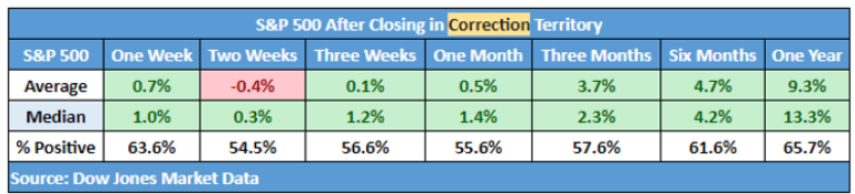 The S&P 500 fell 1% to close at 4,304.76, more than 10% below its Jan. 3 high and into correction territory. Market technologists typically define a dip into correction territory as a decline of at least 10% (but no more than 20%) from the most recent peak.