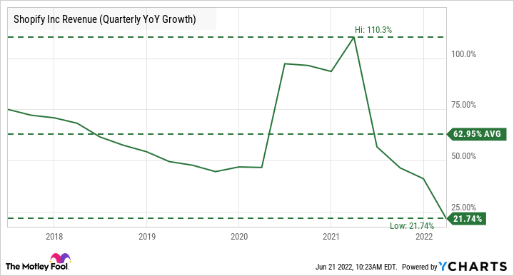 Part of the problem for Shopify was that it was simply doing too wellamid lockdowns and people staying home due to COVID. Its growth rate during the pandemic took off and reached levels that simply aren't sustainable long term: