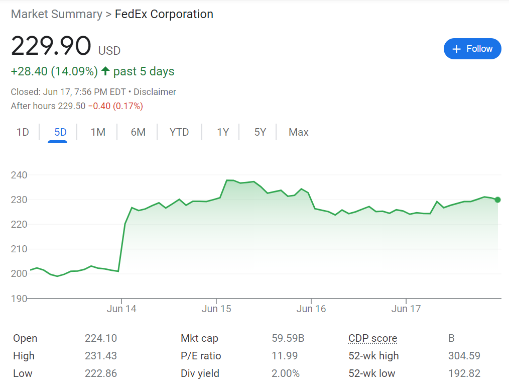 In June 2022, FedEx raised its dividend by 53% to $1.15 per share (annually: $4.60). The dividend is payable Jul 11, of record as of Jun 27. The move underscores the company’s sound financial health as it utilizes free cash flow for enhancing shareholders’ returns.