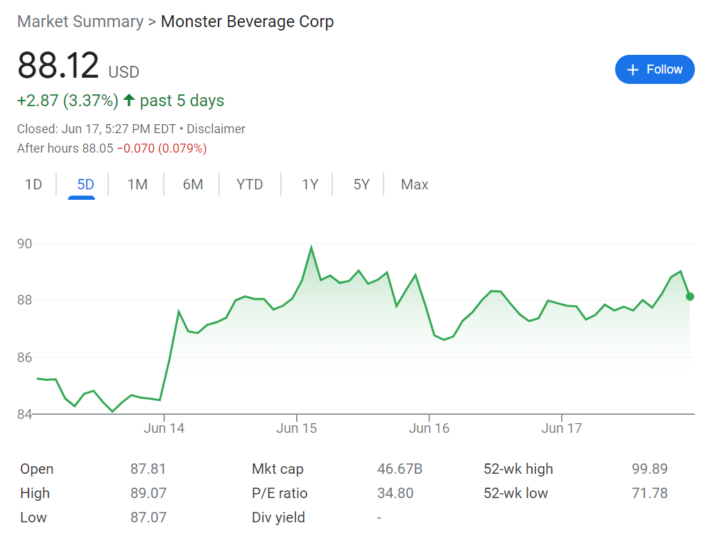 The shares of Monster Beverage Corp have received a $117 price target from Morgan Stanley. And Morgan Stanley analyst Dara Mohsenian increased the price target on Monster Beverage from $111 while maintaining an “Overweight” rating on the shares.