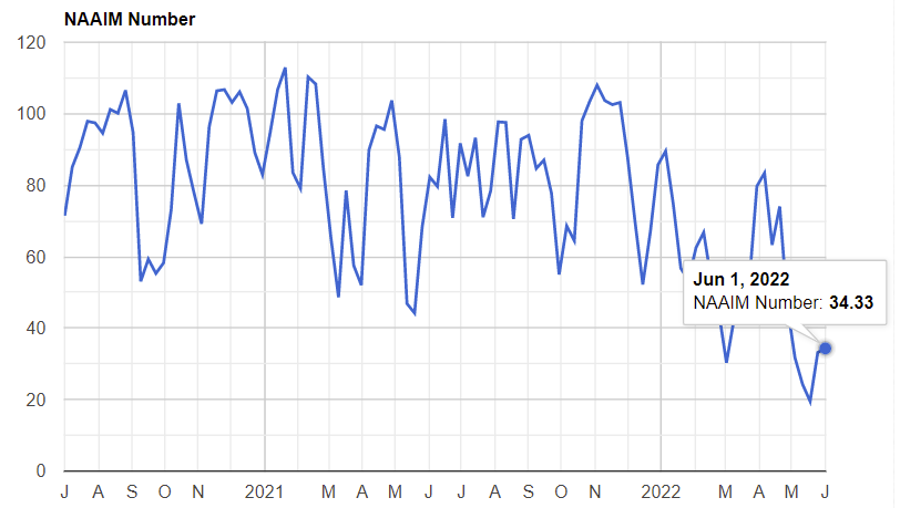 This week’s NAAIM Exposure Index number is: 34.33, coming off from its lowest level of the past 24 months recorded in the previous week.