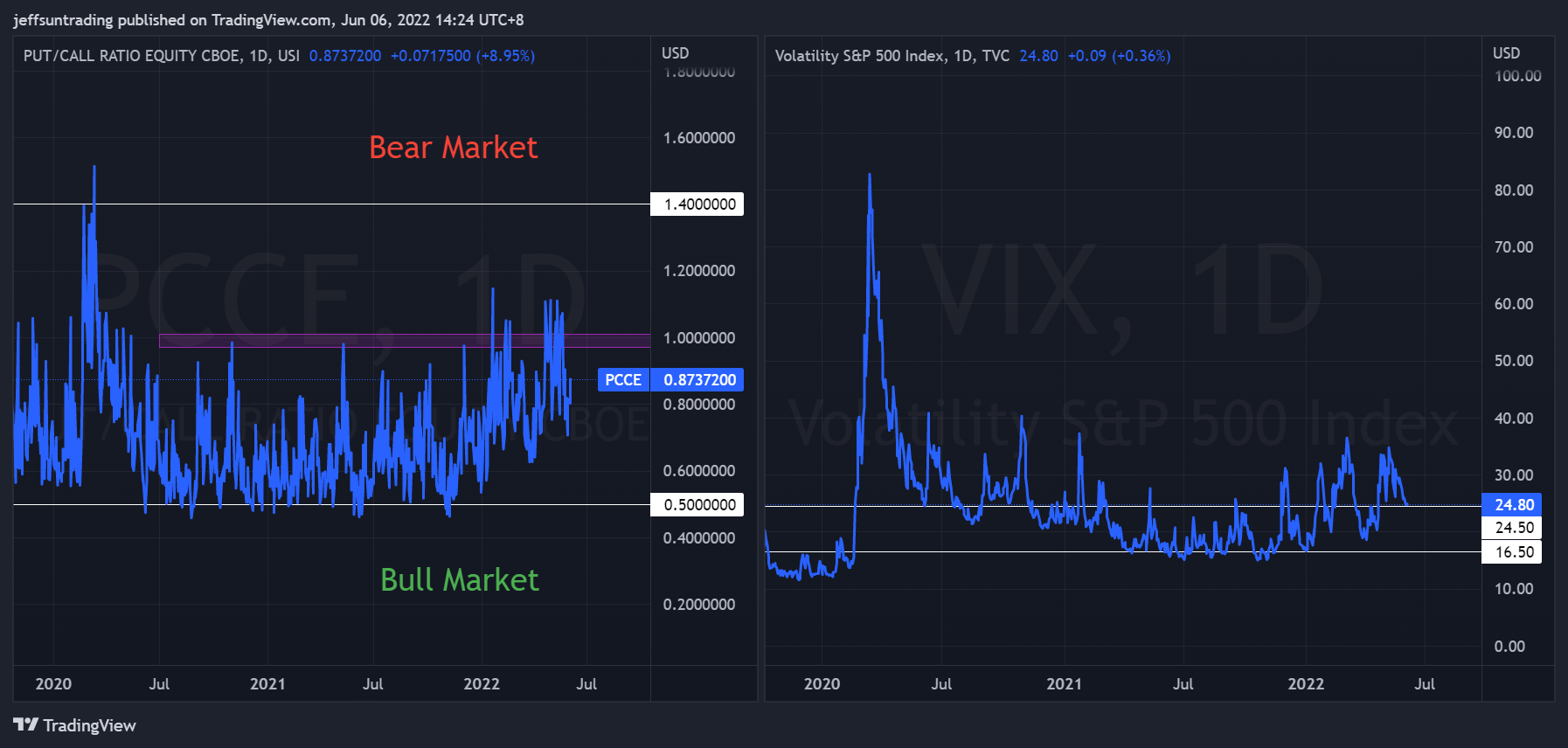 $PCCE (Put/Call Ratio Equity) & $VIX (Volatility S&P 500) – $PCCE and $VIX Reflects Movement Towards Neutrality