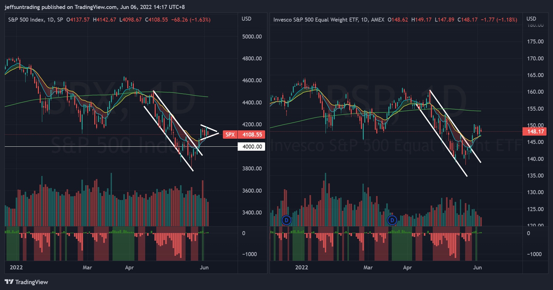 $SPX (S&P 500) vs $RSP (S&P 500 Equal Weight) – (Net High/Low +43)