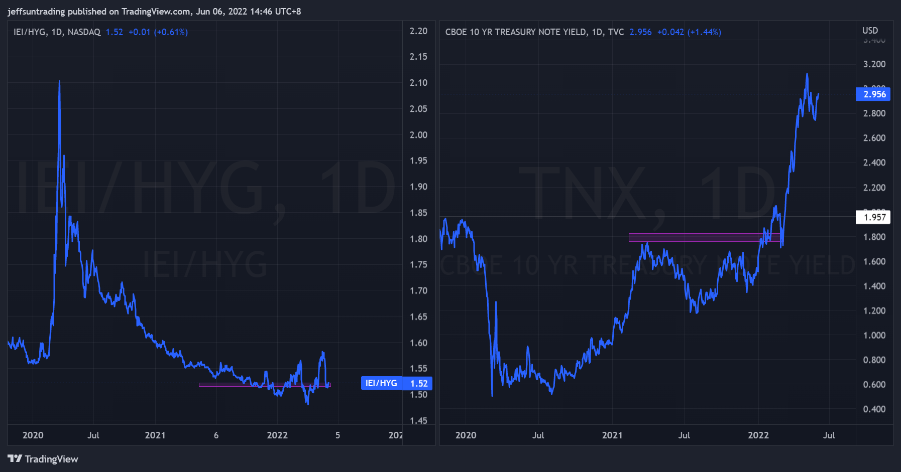 $IEI/$HYG (Credit Spread) – $TNX (10YR Treasury Yield) – Treasuries Recorded Fourth Straight Week of Gains Reviving Optimism