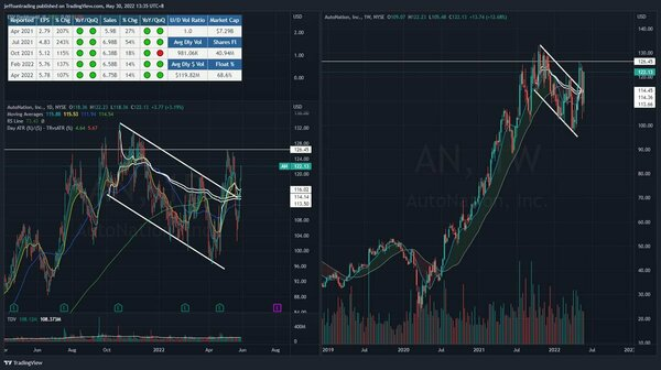 $AutoNation(AN)$ remains in my WL for an entry position at $126.40. recaptured significant levels above VWAP from ATH and early april's swing low.
