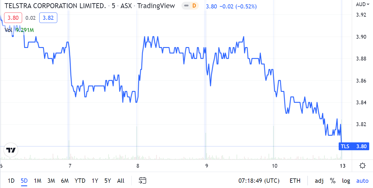 $TELSTRA CORPORATION LIMITED.(TLS.AU)$ belongs to Communications Sector, now price at AU$3.8, the weekly performance is -3.1%,