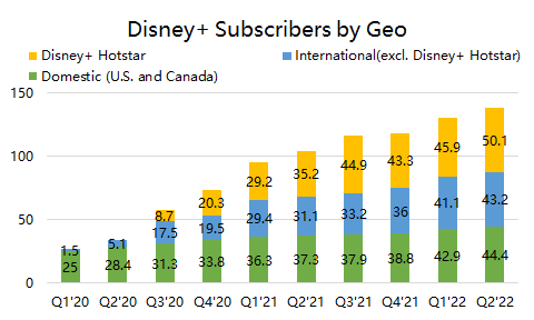 The growth rate of Disney+ in North America this quarter was 19%, which was obviously lower than the overall level, while the growth overseas was even worse, targeting Southeast Asia and other places Disney+ Hotstar subscribers increased from 35.2 million to 50.1 million, a 42% increase YOY, while the rest of the world grew by 39%.