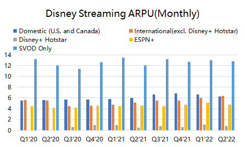 At the same time, we should also see that the losses of DTC business (Disney +, ESPN +, Hulu) are larger than expected, indicating that the market launch and cost expenditure are not restrained. Disney+ Hotstar brings major growth, but it can't bring more revenue. Compared with ARPU of $6.32 in North America, Disney+ Hotstar is only $0.76. And even if the $6.32 in North America, with a year-on-year increase of only 5%,Nor is it comparable to the inflation of more than 8% in the United States.