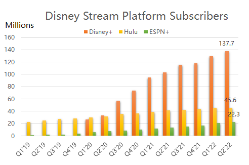Looking at streaming media first, the total number of Disney + subscribers increased to 137.7 million this quarter, an increase of 33% year-on-year, which was higher than the market expected consensus of 134.4 million. The increase in a single quarter was 7.9 million, which was much higher than the expected consensus of 4.47 million.