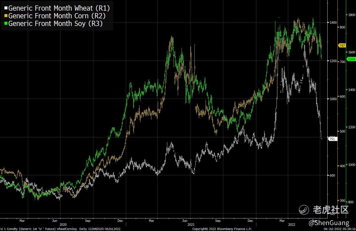 On the question of foodgrains, spot contracts for U.S. wheat, corn and soy have also been plummeting: