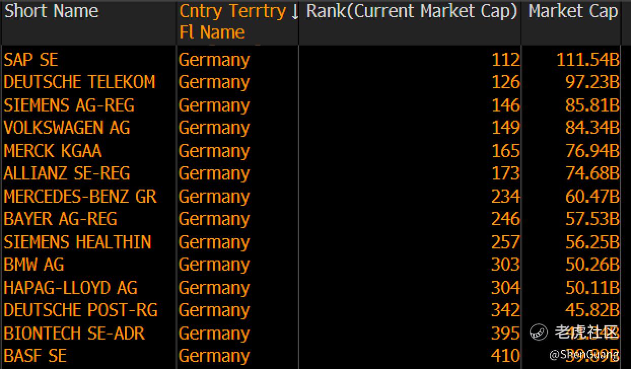 This is not true; over the course of the week, Germany officially no longer has any company in the Top 100 companies by market cap. The country's most valuable company $SAP SE(SAP)$ now ranks No. 112.