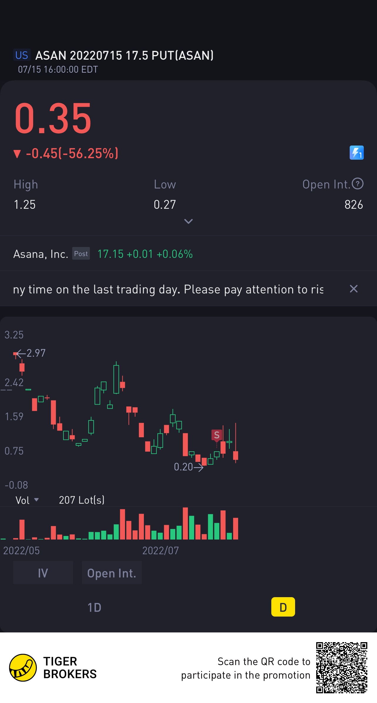 $ASAN 20220715 17.5 PUT$[Miser]
