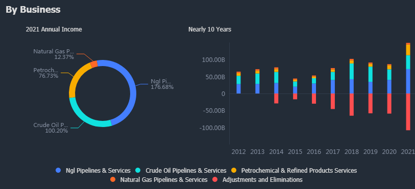 The Company's segments include NGL Pipelines & Services; Crude Oil Pipelines & Services; Natural Gas Pipelines & Services, and Petrochemical & Refined Products Services.