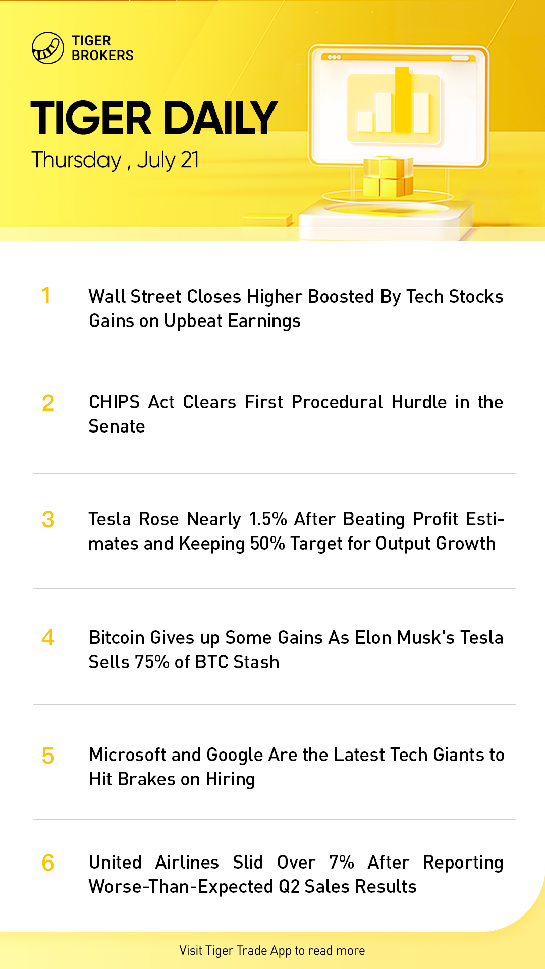 - $Tesla Motors(TSLA)$ . late Wednesday reported second-quarter earnings above Wall Street projections, defying expectations that COVID-related shutdowns in China would hurt its bottom line, thanks to vehicle price increases and selling of most of its bitcoin.