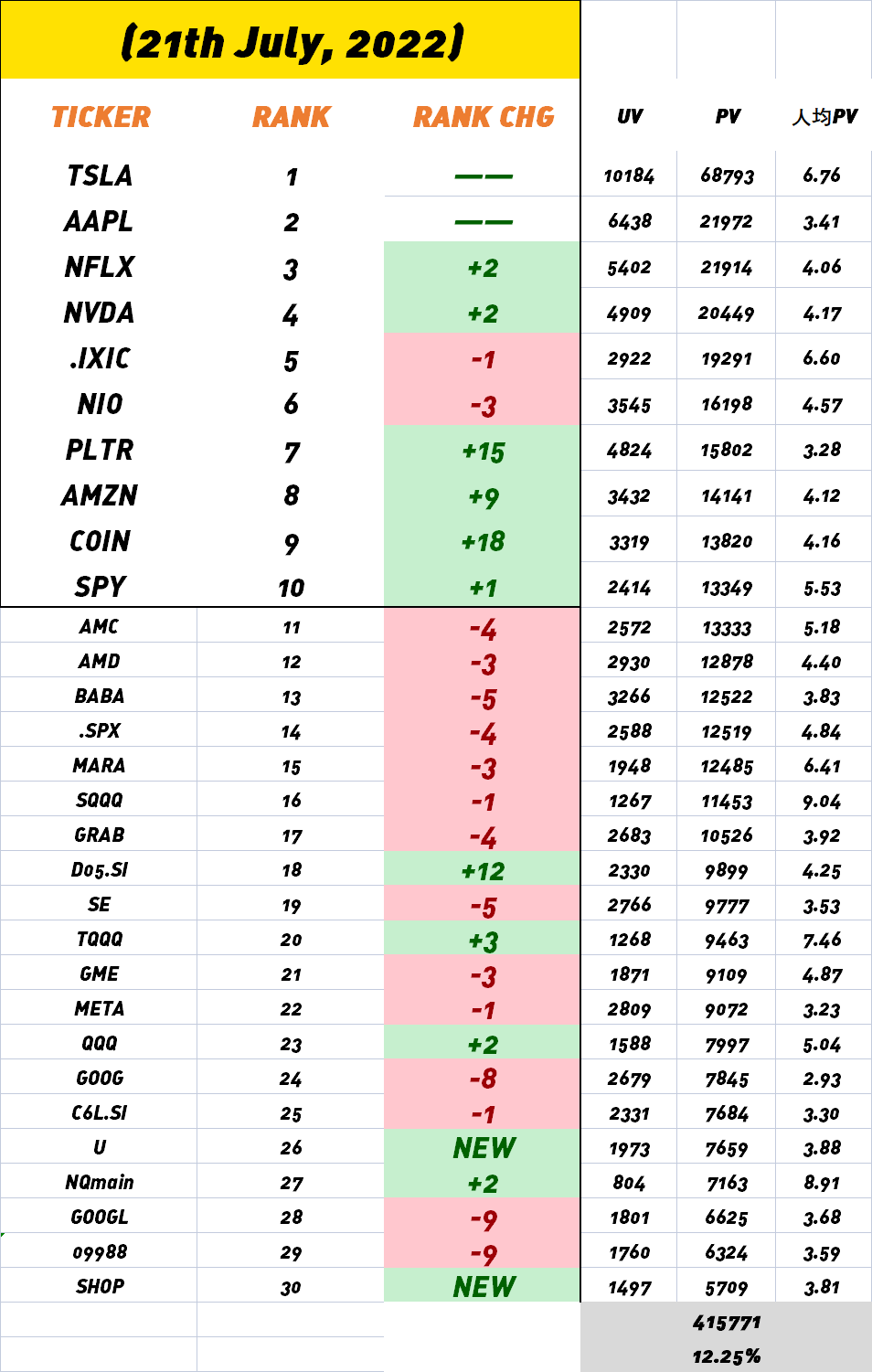 βFor The Daily Most Active Stocks in S&P 500 & The Top 10 Popular Stcocks on WallStreetBets please turn to@TigerObserverβ