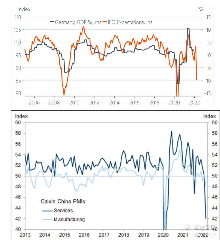 The stock market normally peaks before there is a recession and well after the central bank has started to raise interest rates. It is interest rates that then stifle growth. But there are more negative feedback loops these days. For instance, rising energy prices also act as an interest rate hike, they inhibit economic growth. Growth is also inhibited by rising food prices (12 percent European CPI and 14 percent American CPI). The problems with corona in China and the war in Ukraine are causing further problems in the supply chain. Furthermore, growth is being depressed by the collapse of the Russian and Ukrainian economies. Business confidence has fallen sharply, as shown by the IFO, for example. Consumer confidence is under pressure due to high inflation. Finally, there is a risk that the sanctions taken will cause financial accidents, just as LTCM was an accident as a result of the Russian default in 1998.