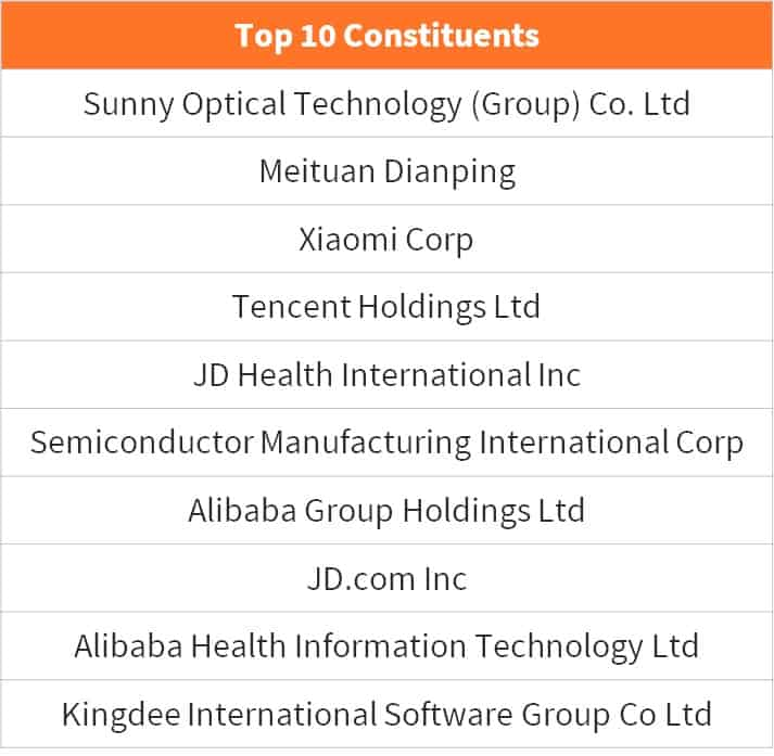 When Lion-OCBC Securities Hang Seng Tech ETF went IPO, the top 10 constituents were: