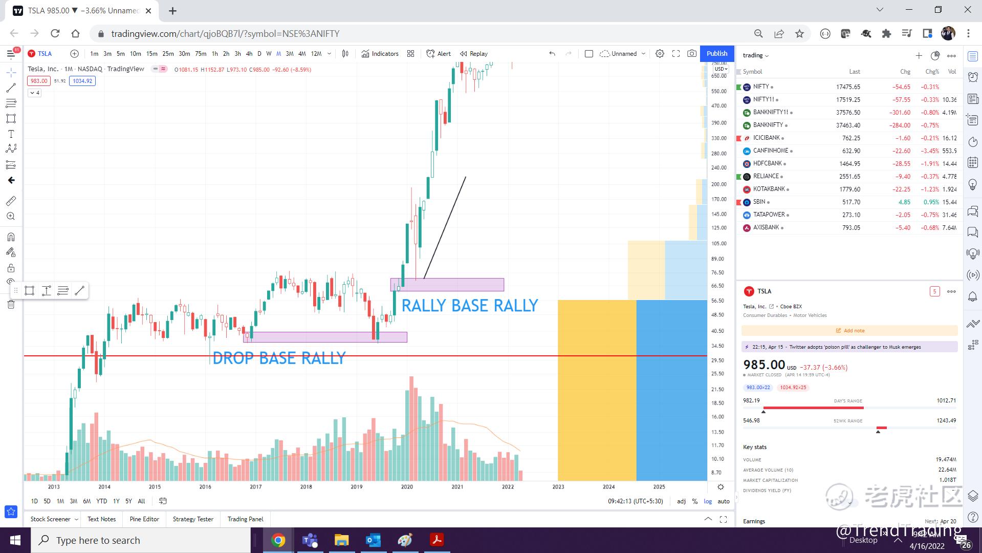 Let us apply what we have learnt on the monthly charts of TESLA.