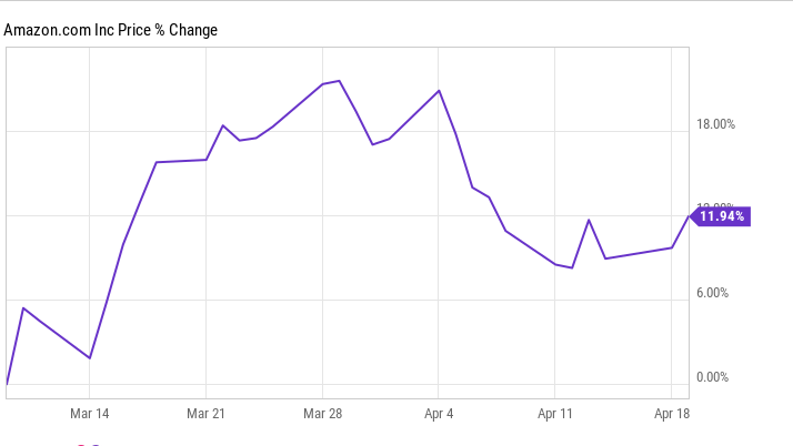 Amazon stock has gained over 10% since the split was announced on March 9, as shown below. The chart shows an immediate positive effect on shares. This could continue in the lead-up to the June split, with earnings also weighing in.