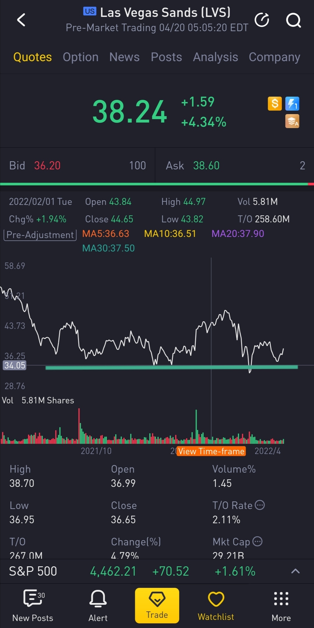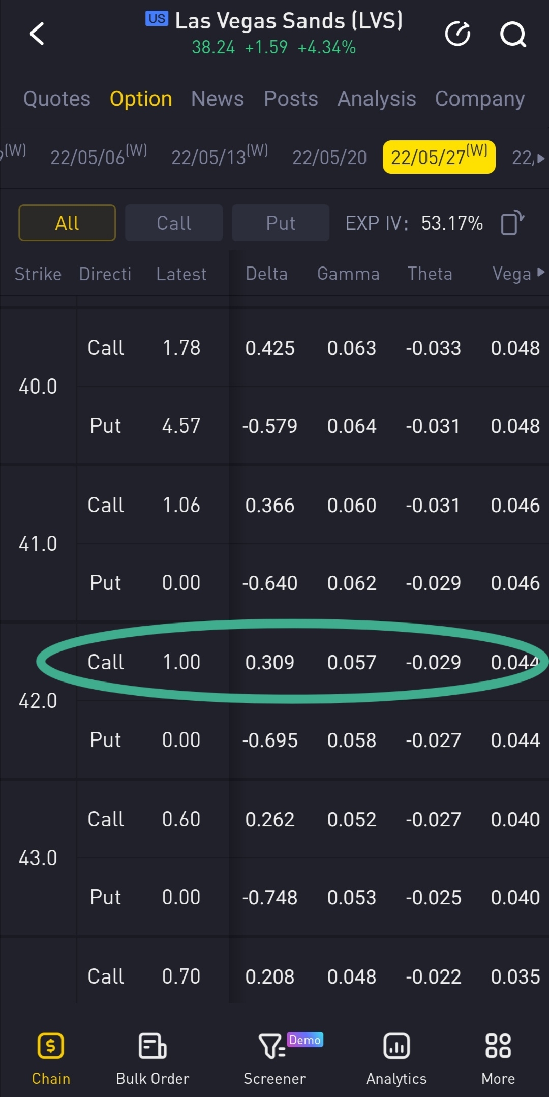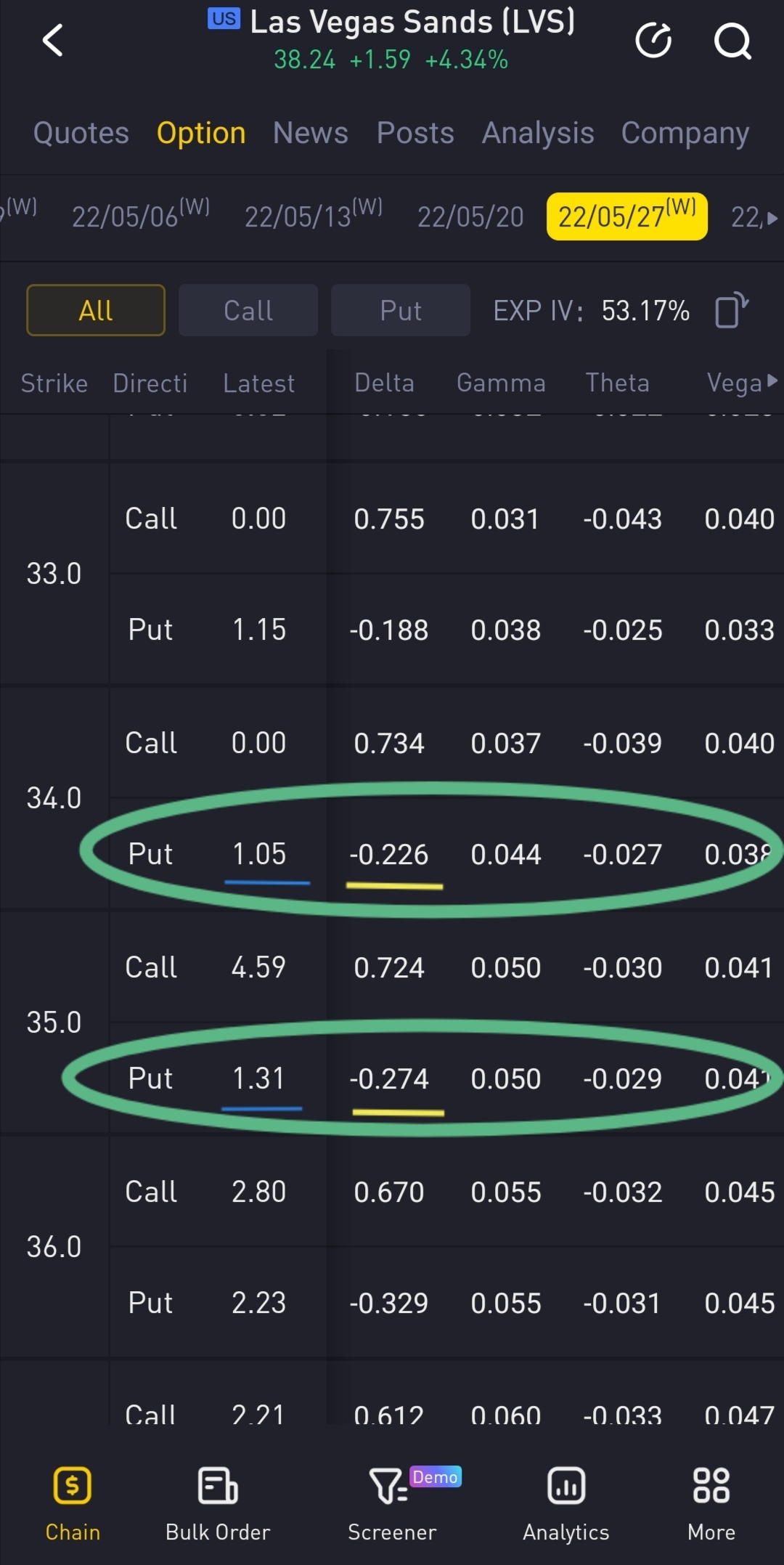 Here is a actual example using one of my favourite US stock, $Las Vegas Sands(LVS)$ .