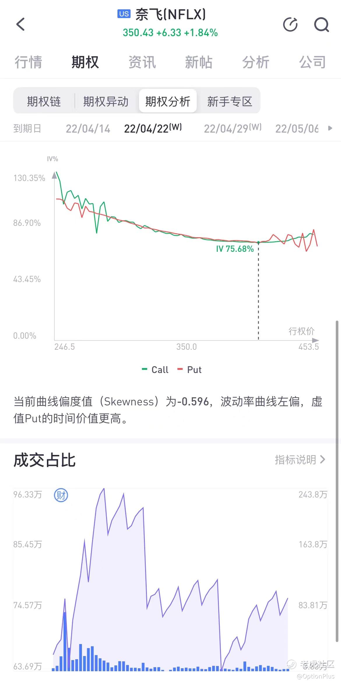 If I choose ±$50 to trade straddle, that buy both CALL at $400 and PUT at $300, there is an obvious IV guidance, and the IV of PUT has exceeded 90%, much higher than the CALL.