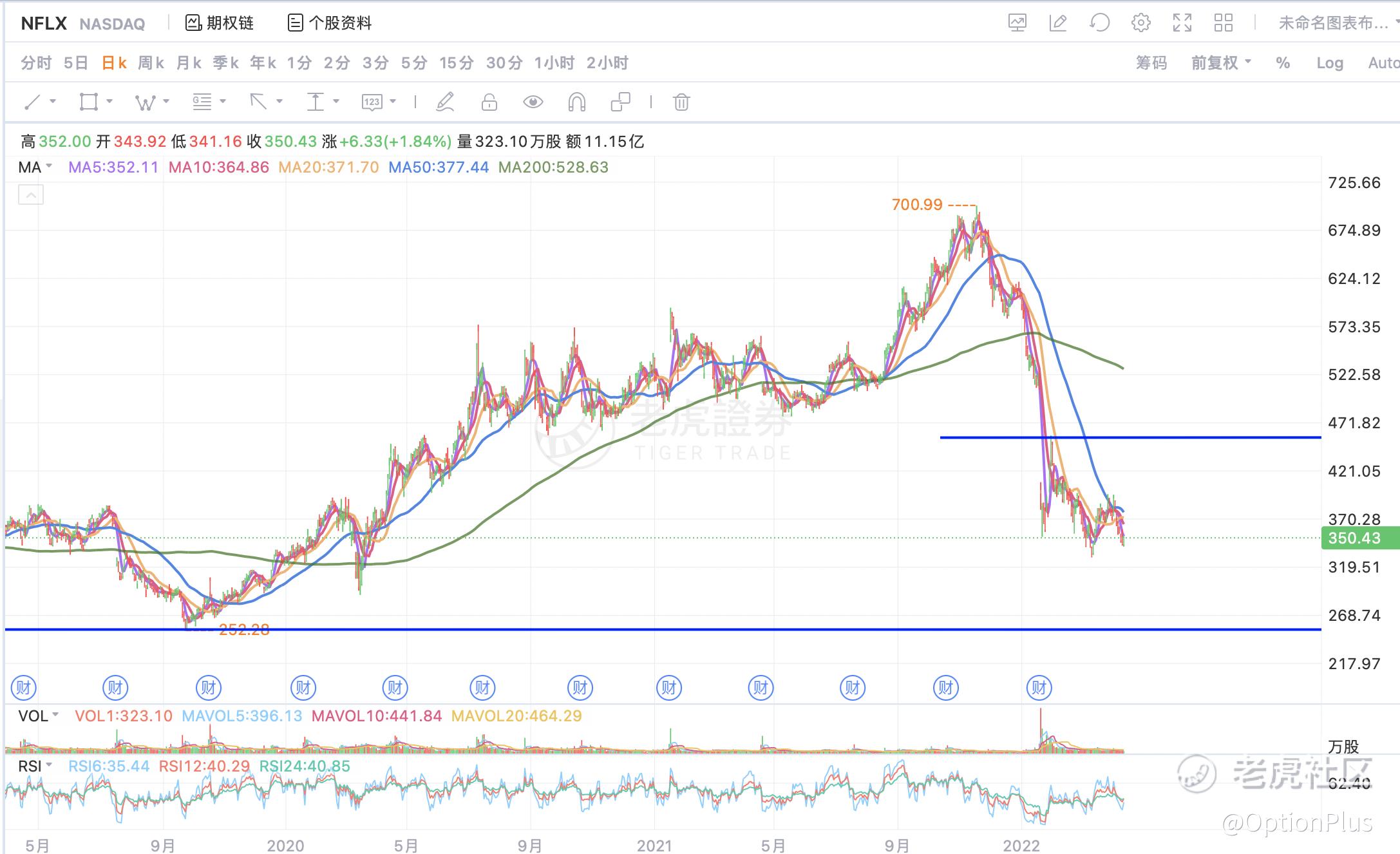 Look at the graphic, Netflix does not have an obvious bottom at present. If the market is crash, NFLX is not surprising to break $300.