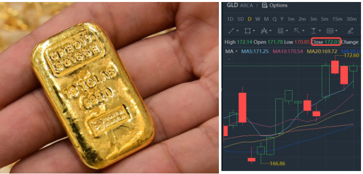 Since the beginning of 2022, $(GLD)$ has increased by 2.24% to $172.03, currently the gold future price is around $1,841.76.