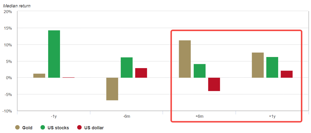- Gold has typically outperformed following the first rate hike of a Fed tightening cycle