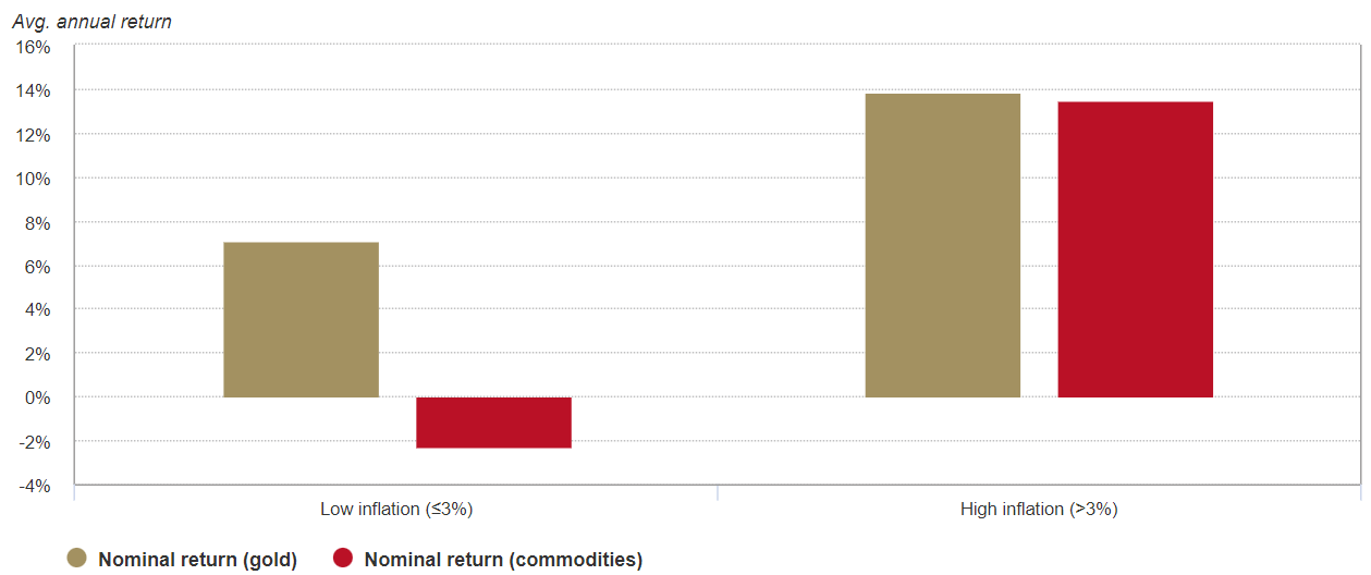 - Gold historically performs well in periods of high inflation