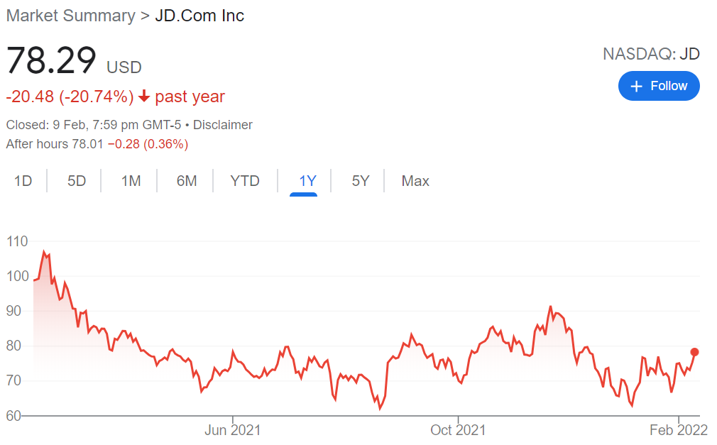 - Alykrunch·2022-02-15I bOught JD when it was falling. Not Sure if i should cut losses and hope for a recovery. What do you all think?1Report