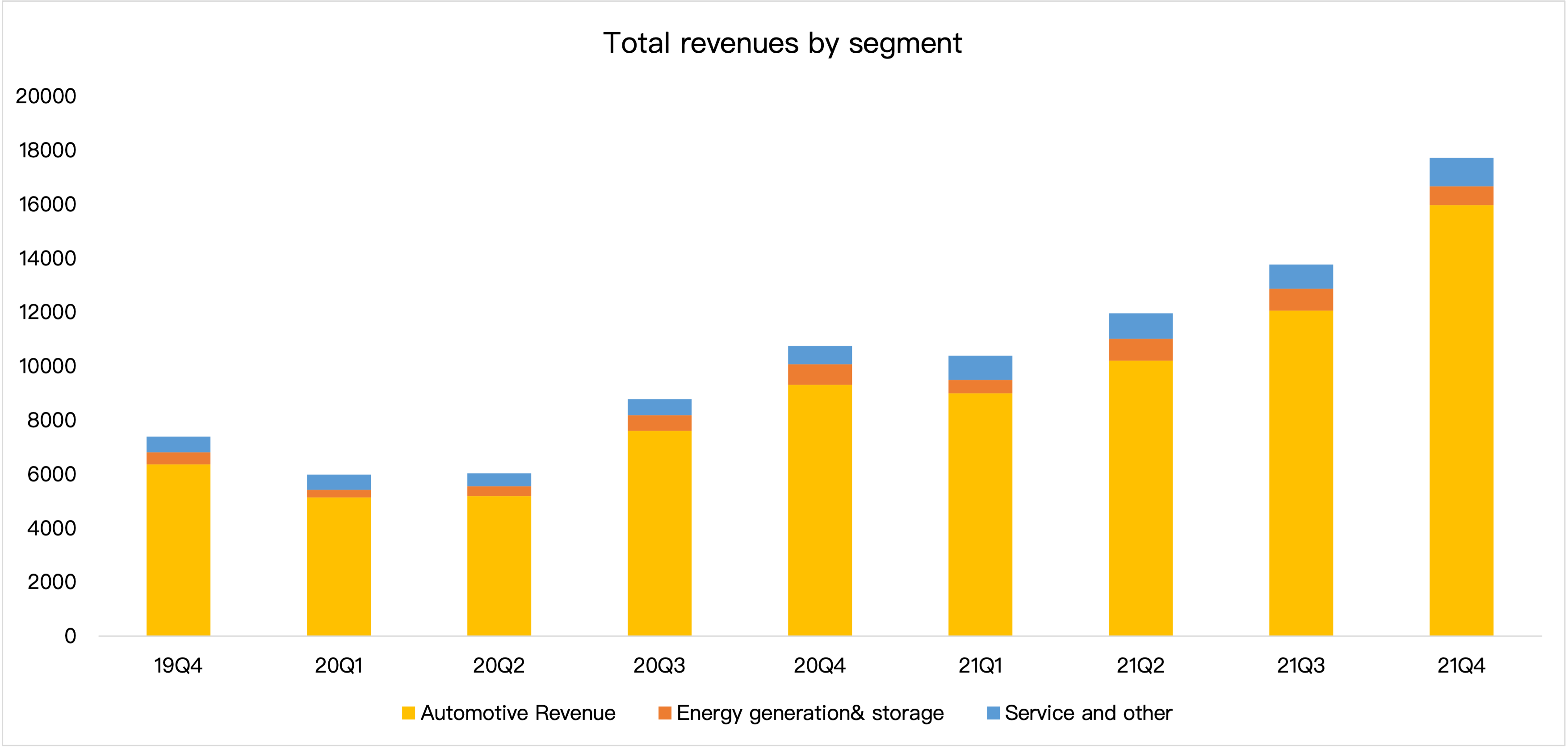 As I discussed in my Tesla earnings preview article, analyst estimates were just too low as usual. The company has beaten on the top and bottom line basically every quarter in the last two years. Asuming Tesla’s average selling price is $50,000, the car sales revenue is roughly 15.4 billion. According to historical data, revenue from energy and maintenance services is around 1 billion, adding up to around 16.4 billion.it is easy to beat on the top and bottom line.